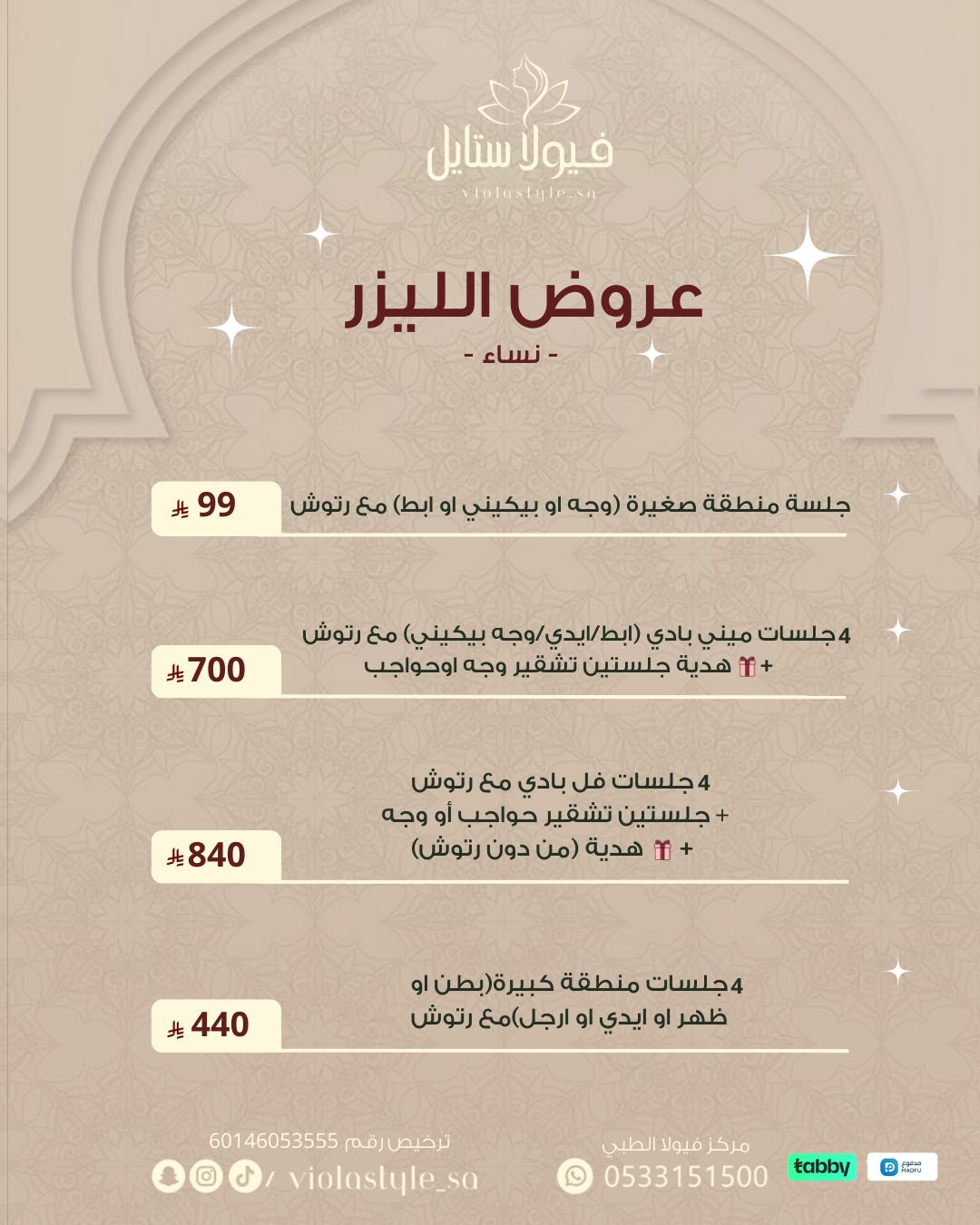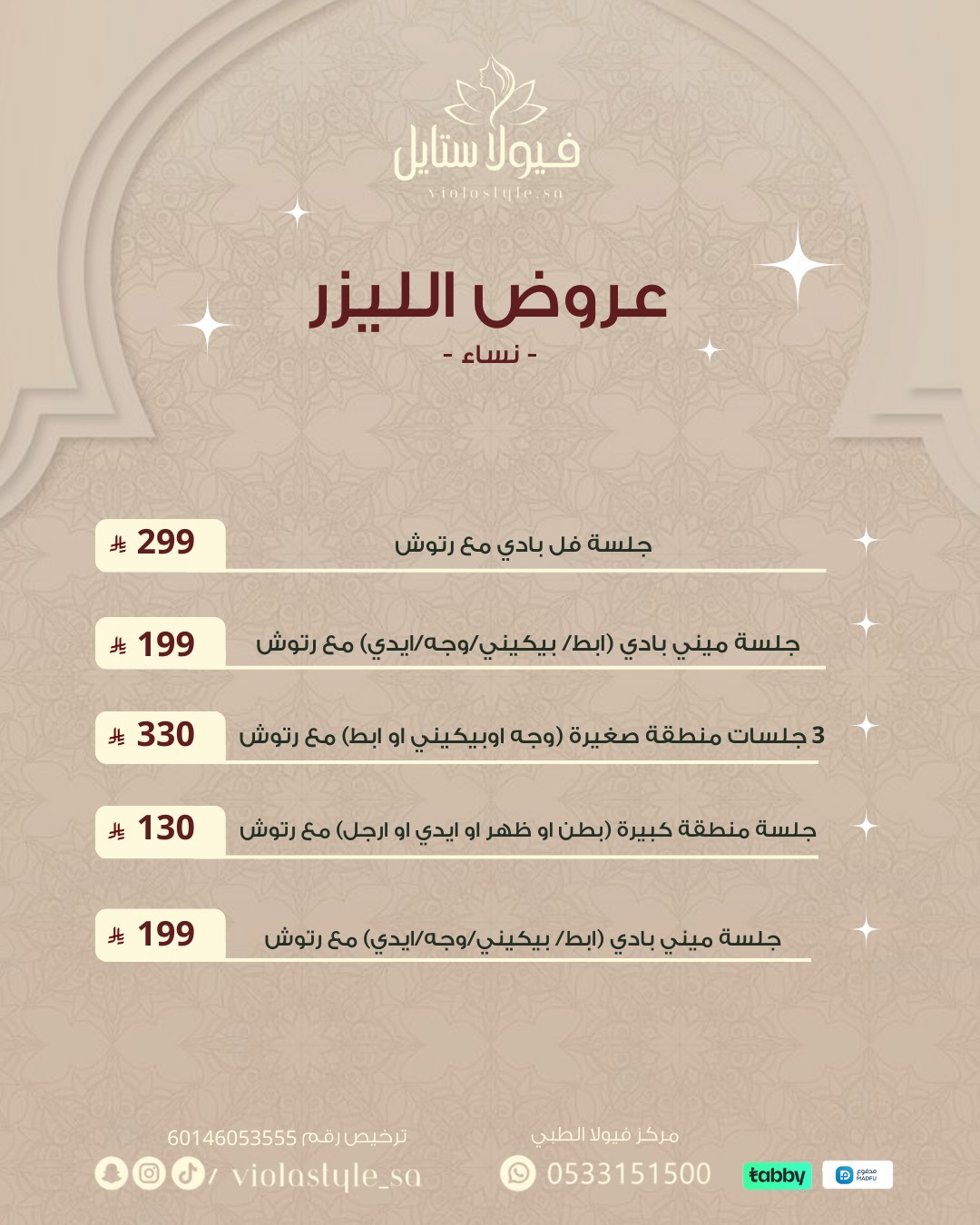 العنوان حي التعاون - طريق أبو بكر الصديق مجمع فيولا الطبي - فيولا ستايل
